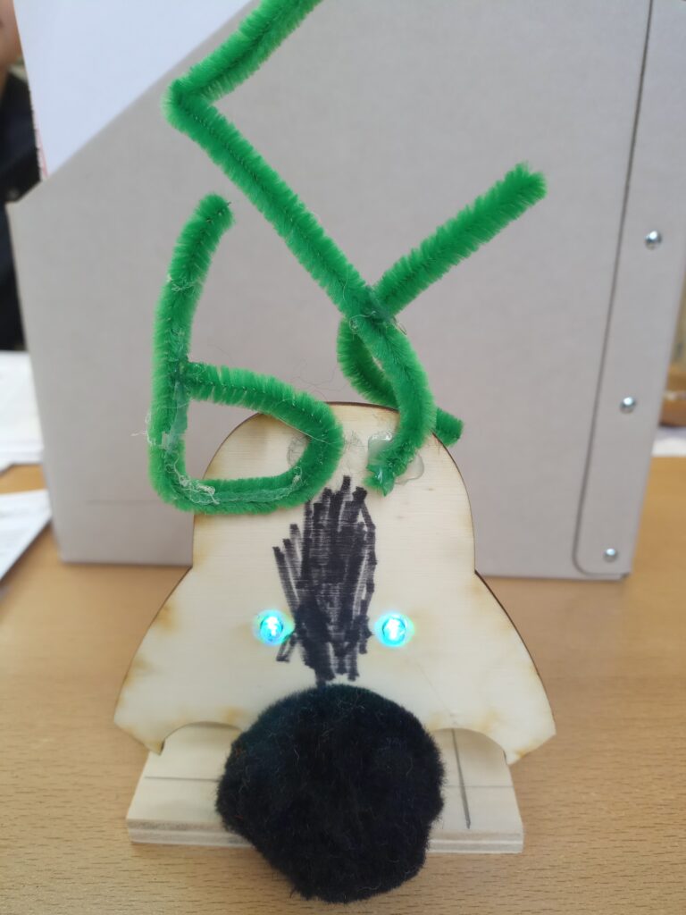 Die Klasse 3b und ich unternahmen einen Ausflug in die Wissenswerkstatt. Alle sind nett und gut gelaunt, außer Sophia. Wir fahren 15 Minuten mit dem Zug. Wir bauen einen Stromkreise mit Schalter und LED-Lämpchen. Die LED´s sind die Leuchtaugen einer Holzfigur. Man konnte sich die Form der Figur aussuchen. Ich geben der Wissenswerkstatt ⭐⭐⭐⭐⭐.